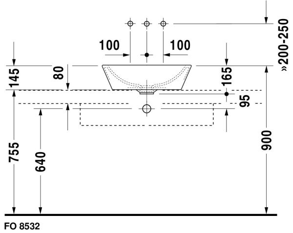 - Unterseite geschliffen, daher für die Montage auf Konsolen oder Waschtischunterschränken mit Konsole geeignet
